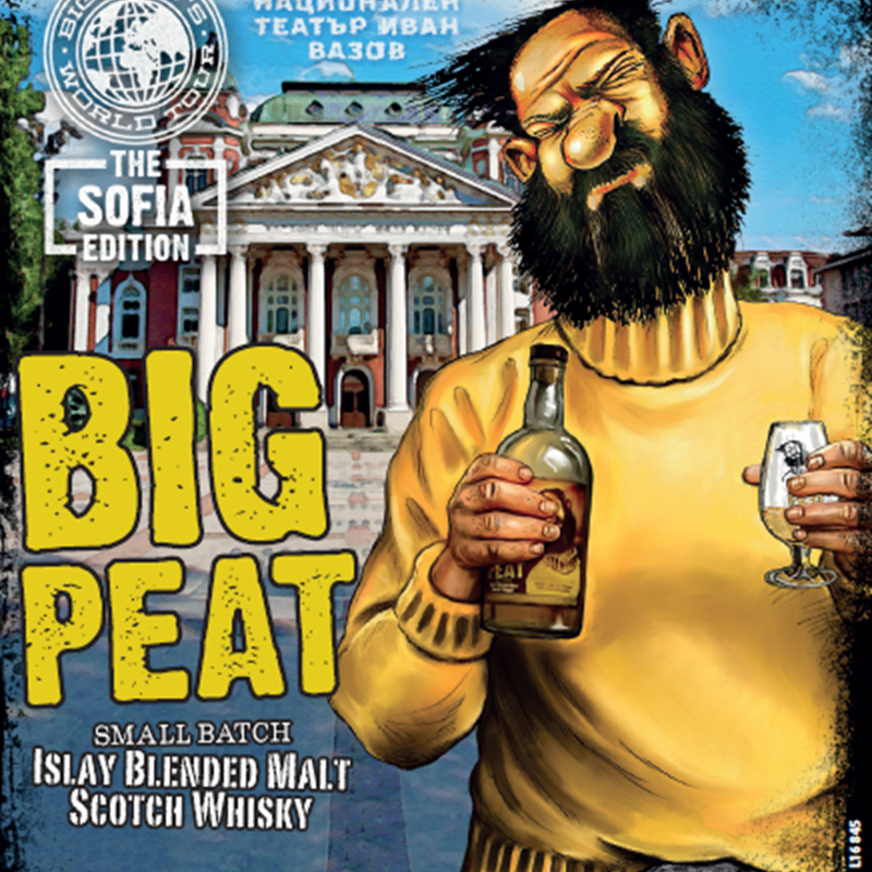 Big Peat is visiting his friends in Sofia, Bulgaria with a peaty dram in hand to celebrate his trip. Full of phenolic quality, with notes of sweet summer tar, tangy liquorice and Hebridean sea air.